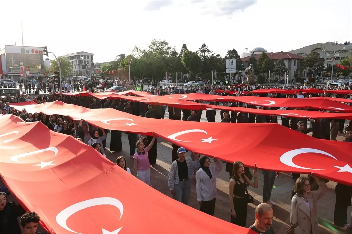 Erzincan'da da binlerce vatandaş 600 metre uzunluğundaki Türk bayrağıyla Halitpaşa Caddesi boyunca yürüdü.