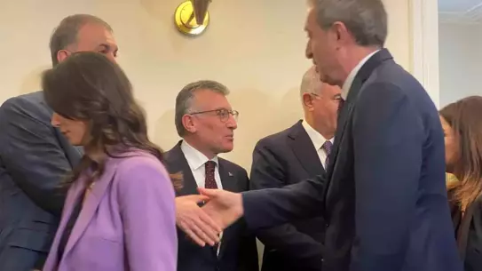 DEM Parti Eş Genel Başkanları Tuncer Bakırhan, Tülay Hatimoğulları DEM Parti Grup Başkanvekilleri Sezai Temelli ve Gülüstan Kılıç Koçyiğit'in yer aldığı heyet, AK Parti TBMM Grup Başkanlığını ziyaret etti. AK Parti Grup Başkanı Abdullah Güler, AK Parti Genel Başkanvekili Efkan Ala, AK Parti Sözcüsü Ömer Çelik, AK Parti Grup Başkanvekili Özlem Zengin ile DEM Parti heyeti arasındaki görüşme yaklaşık 2 saat 15 dakika sürdü.