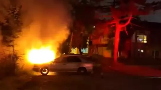 Düzce'de Park Halindeki Araç Alev Alev Yandı