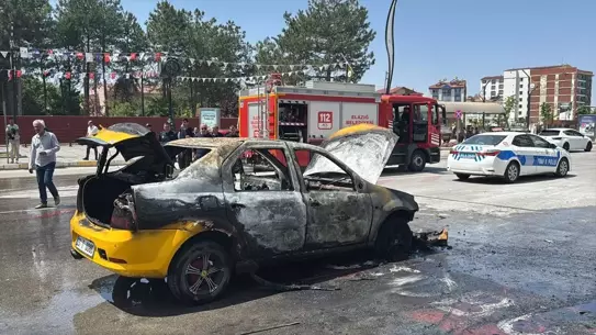 Elazığ'da durakta bekleyen taksinin alev alması sonucu sürücü yaralandı.